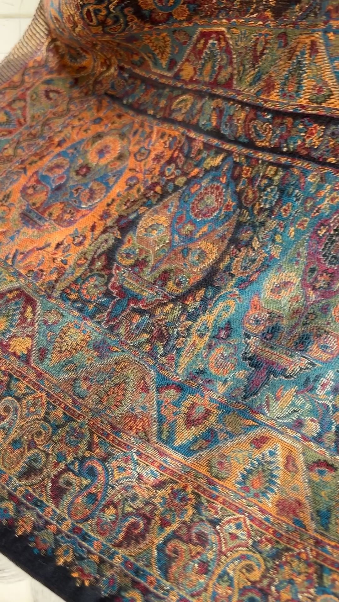It is an handwoven art. A banarasi masterpiece which can be teamed up and styled with suits and gowns.
