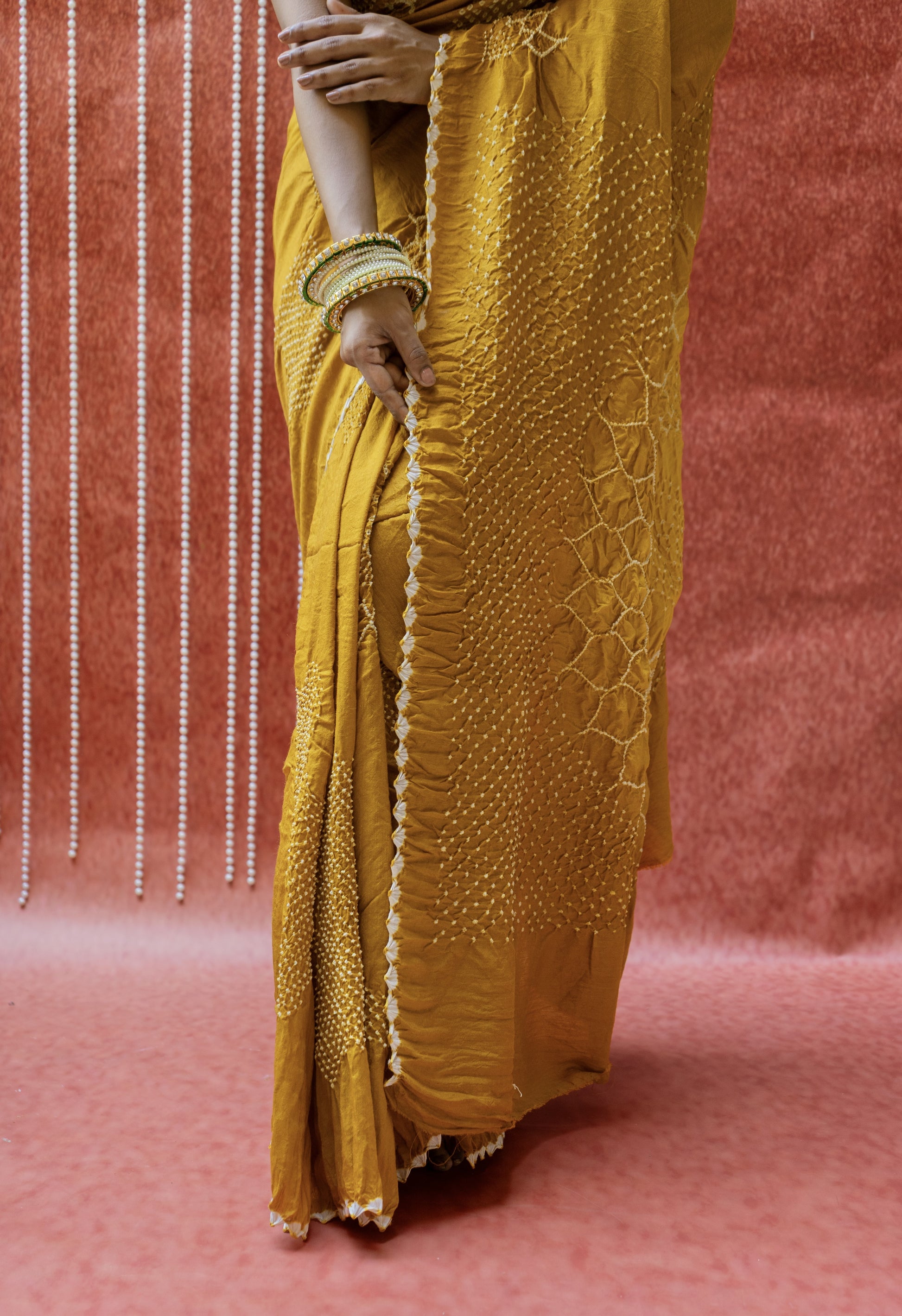Moonga Rai Dana Mustard Bandhej Saree