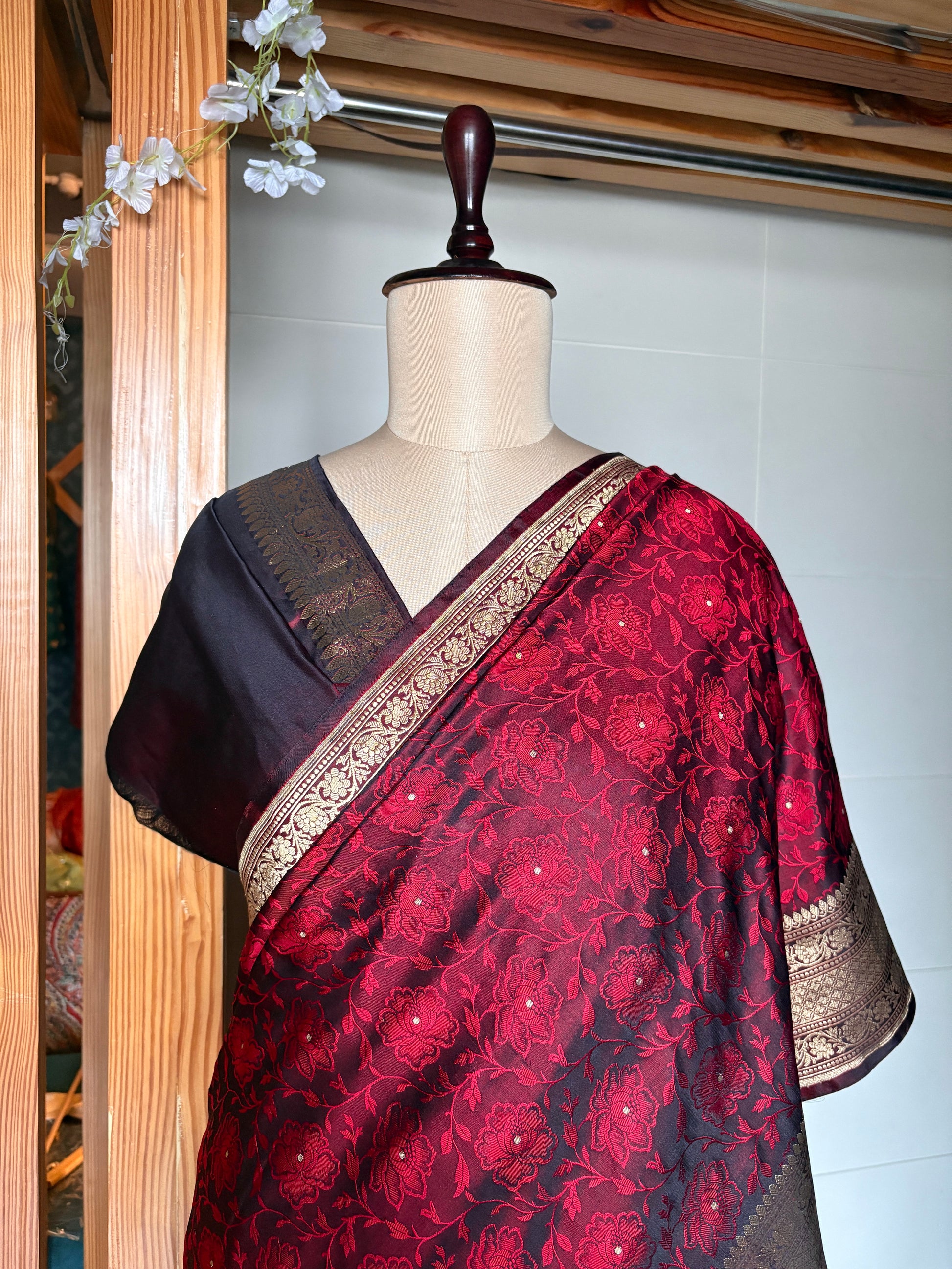 Pair this saree with your favorite jewelry and accessories to complete a stunning ensemble that exudes grace and sophistication.