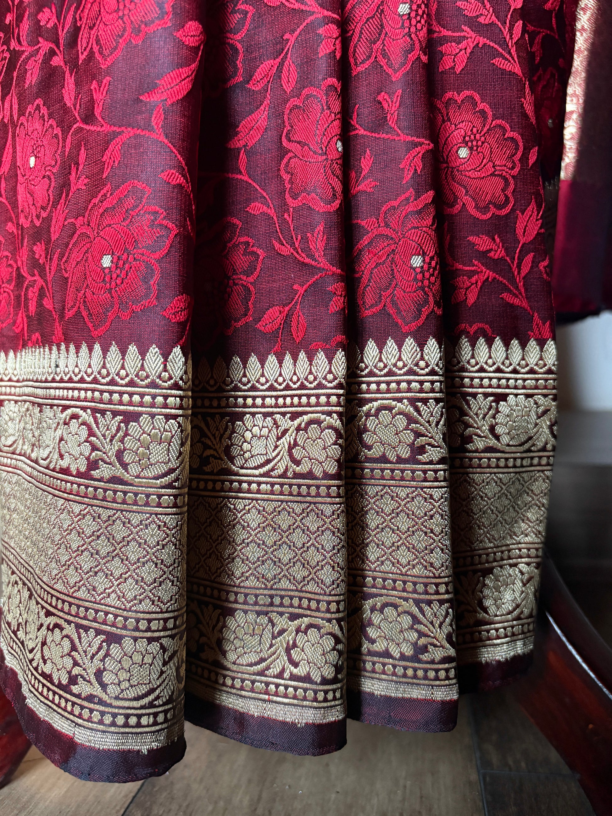 Whether worn at weddings, festive gatherings, or cultural events, the Red Tanchoi Saree is sure to turn heads and leave a lasting impression.